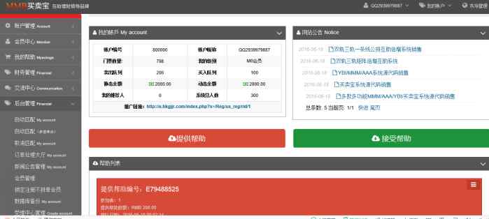 会员等级制度1.注册成功即为L0;2.首次打款成功即为L1;3.推荐2个成功打款的会员即可升级到L2;4.推荐5个成功打款的会员即可升级到L3, 5.推荐3个L3会员即可升级到L4,6.推荐3个L4会员即可升级到L5,7.推荐3个L5会员即可升级到L6,8.推荐3个L6会员即可升级到经理。9.所有级别会员每天1.5%利息,买入基金开始算,10天为一个周期共计15%收益封顶;10.所有级别会员每隔4天必须排一单,超出复投时间,系统自动冻结账户;12.买入基金金额1000至10000之间选择;每次复投金额不得低于上一次买入基金额度。13.买入基金次数一天限一次。14会员注册完毕12小时之内必须买入基金,超时封号。15带16抽奖17 虚拟币 购买基金币1.新用户购买基金币排单成功交易后,系统赠送10基金币。2.购买基金币方式—【后台客服处购买】, 3.基金币排单细则:a.排单1000,基金币1枚;b.排单2000,基金币2枚;c.排单3000,基金币3枚;d.排单4000,基金币4枚;。。。。。。e.排单10000,基金币10枚; 动态及静态奖1.动态奖a.L2拿推介奖一代的10%;b.L3拿推介奖一代的10%,二代的5%;c.L4拿推介奖一代的10%,二代的5%,三代的3%;d.L5拿推介奖一代的10%,二代的5%,三代的3%,四代的1%;e.L6拿推介奖 一代的10%,二代的5%,三代的3%,四代的1%,五代的0.5%;f.经理拿推介奖 一代的10%,二代的5%,三代的3%,四代的 1%,五 代的0.5%,无限代的0.2%;g.推介奖冻结10天日发放。 静态收益1.投资额度范围1000元--10000元,每天1.5%利息,一轮周期获得10天的收益。2.匹配成功后6小时完成交易1.5%利息,超过6小时冻结账户。匹配成功1小时内成交易2%利息。3. 排队时间5天--10天(系统随机匹配),回流时间48小时,提现时间24小时内。 动态卖出限额: a.卖出动态基金每日限额:4000,L6以上的每日限额6000,(一分付出才有一分回报,对于L6以上大领导来说,付出了更多的时间和精力,在平台规则之内获得更大的奖励也是合理的). b. 动态卖出卖出1000起,只能卖出100的整数倍. 限制条件A.所有会员每隔4天必须排单,超出复投时间,系统自动冻结账户。B.平台每天10-15点统一匹配提款订单。C.每个账号每次买入基金金额必须大于或等于上一次。D..平台设置“留言”按钮,方便会员在操作中遇到个别打款不上传图片的,可在留言处留言申请仲裁,平台客服经查询确实在有效时间之内完成打款的,给予充足的收益。仲裁依据:申请仲裁时间是否在有效期之内,全部记录是否都有上传截图。(注:所有会员打款成功务必上传图片)E.动态奖金烧伤制度:L0-L2一次动态奖金覆盖于打款以后十天内,L3以上覆盖打款以后四天内至七天内的所有直推或者其他代的打款成功即可有动态奖金产生。会员每次买入L包金额必须大于等于下面直推或者其他代会员才能获得全部动态奖金,否则动态奖金只能按照自己买入L包的金额的相应百分比获得。例如:B是A的直推。A号买入10000,B号买入1000,则A可获得100元动态奖;A号买入10000,B号买入10000,则A可获得1000的动态奖;A号买入1000,B号买入10000,则A号只能获得100元动态奖。也就说互相作用的两个账号之间只按照同期买入金额小的那个账号的相应百分比获得动态奖。 附:触碰平台高压线,申请解封事宜1、收款成功超过6小时不确认,导致封号,申请解冻消耗10个基金币;2、匹配成功超过6小时不打款,导致封号,申请解冻帐户消耗50个基金币。