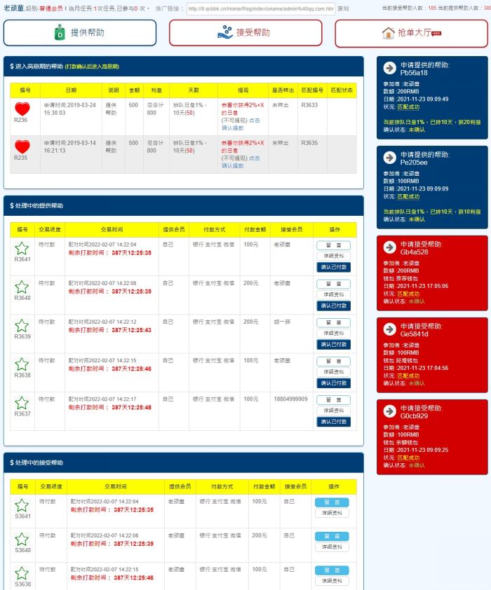 多功能互助源码,抢单互助源码,做任务获得排单币,排单金额第增排单码随着第增 一款目前比较火的源码,YBI金融互助平台二次开发完美运营版源码分享,带激活码+排单币+短信接口功能等等,具体大家自行体验吧!