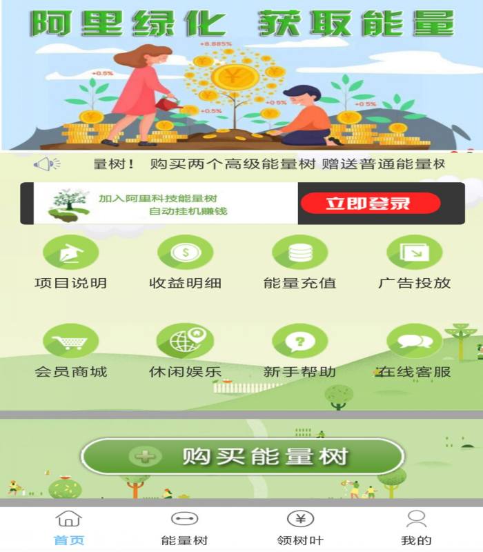 新版阿里能量树,自动挂机赚钱矿机挖矿源码可打包app+安装教程完美运营版