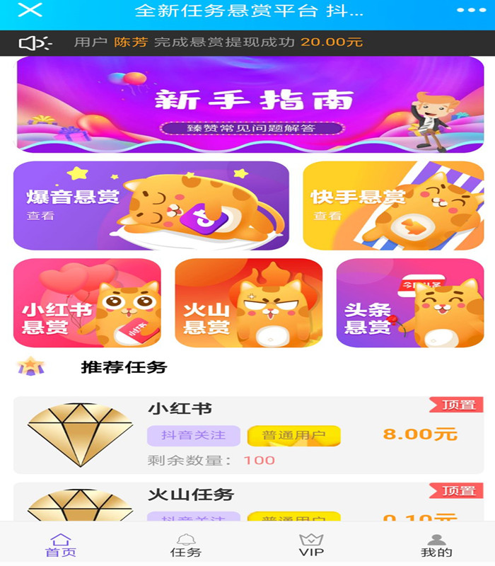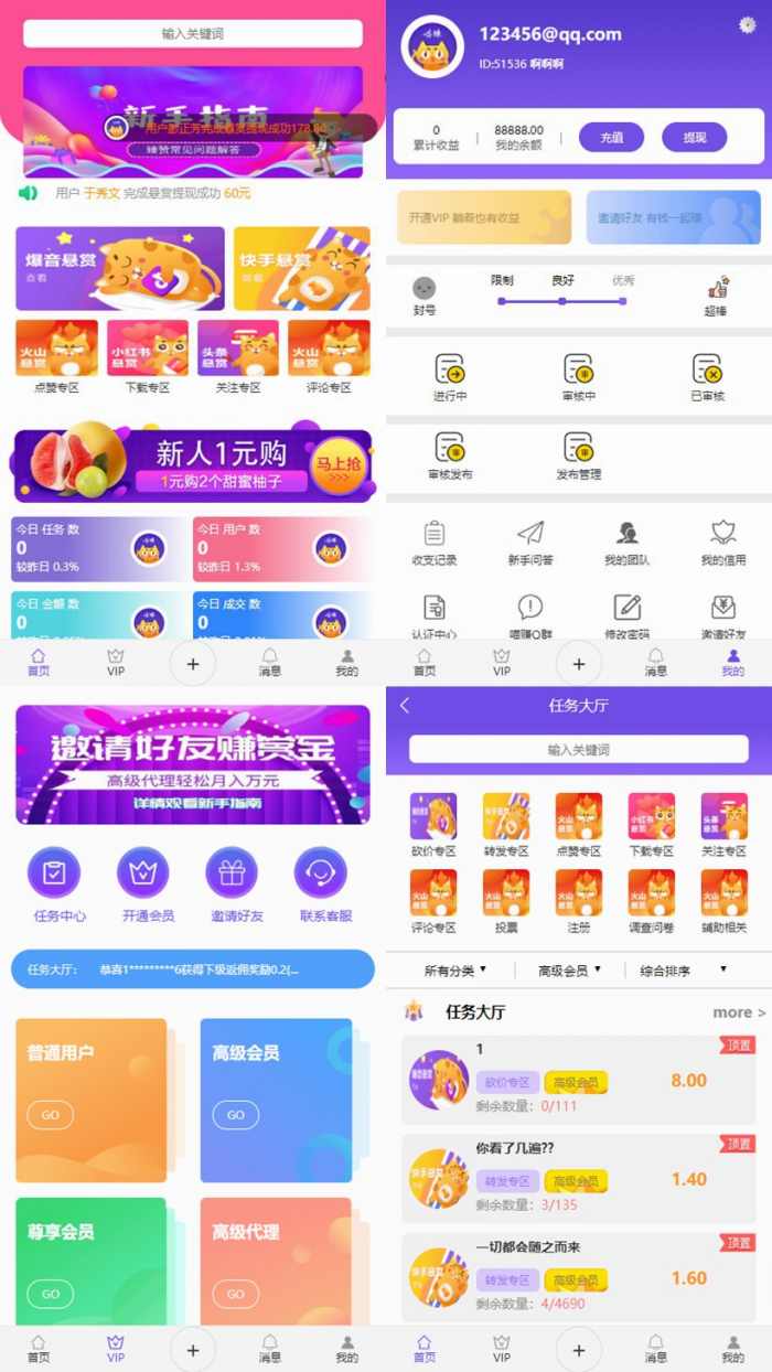 新界面霸屏天下抖音快手关注点赞任务悬赏平台源码 最新更新全新界面多用户任务悬赏发布平台+抖音,火山,快手等关注点赞源码