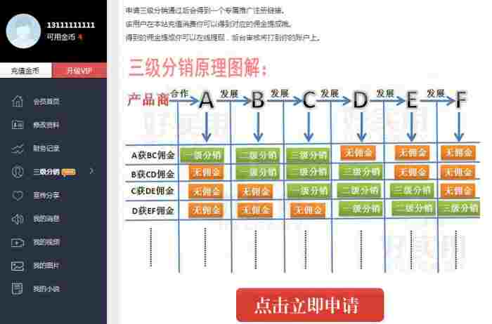 如有用户通过你的专属链接注册成为本站会员,将自动成为你的下级会员,