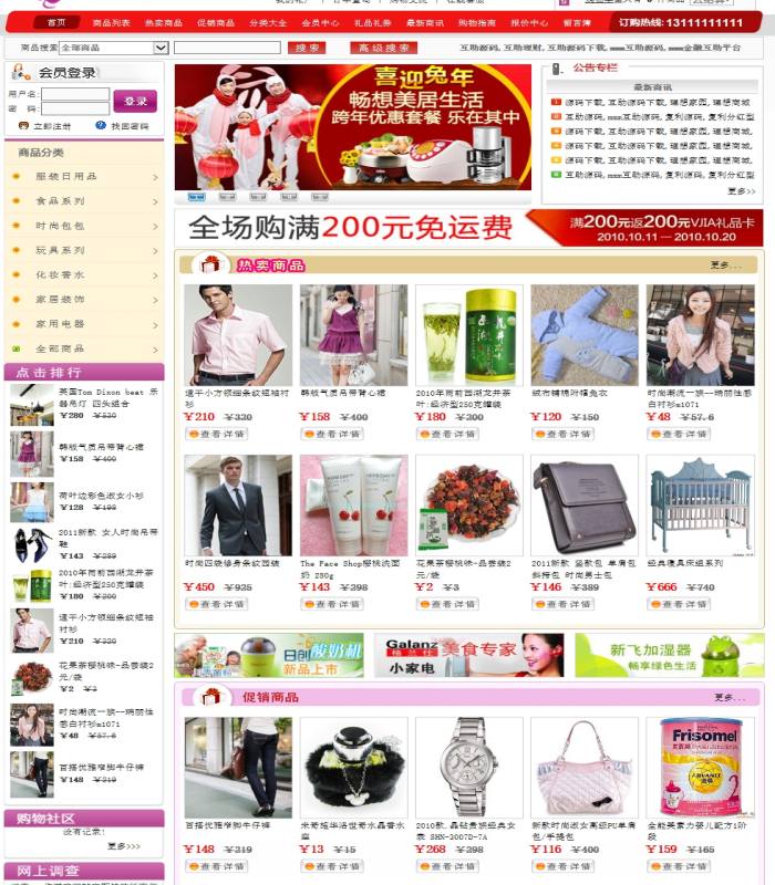 购物系统拥有强大的管理功能和完善的在线支付平台体系。后台管理菜单合理分配,管理目录清晰明了。支持多种最新版本在线支付接口,如支付宝、网银在线、财付通等接口,支持多级商品分类划分功能,可以方便的划分各商品类别的上下级关系,支持单商品多分类展示功能,订单方面设计完美,如支持订单模糊查询、订单状态的编辑及打印等功能,灵活的DIY可以设置首页类别商品在首页显示的位置及状态。