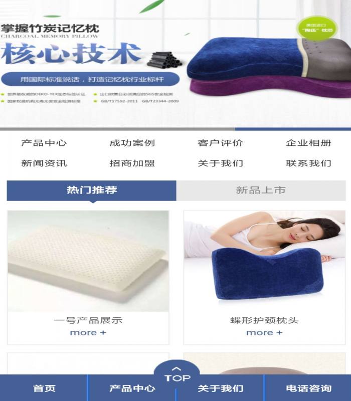 (带手机版数据同步)营销型记忆枕头床上用品网站源码 护颈枕头家居用品网站模板,网站建设,通用模板