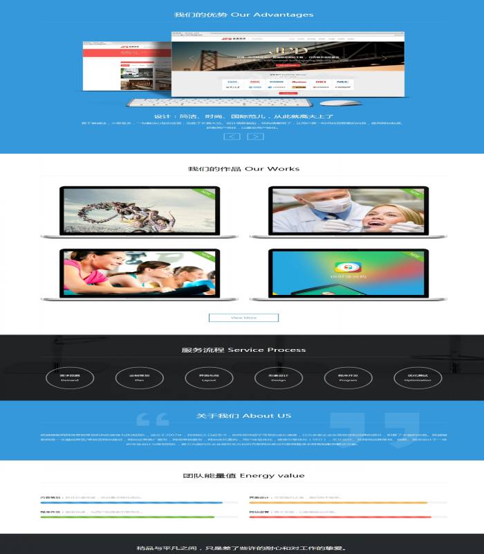 本套网站模板采用现在非常流行的全屏自适应布局设计,且栏目列表以简洁,非常时尚大气。页面根据分辨率大小而自动排版,很大程度上改善了页面宽度兼容问题,