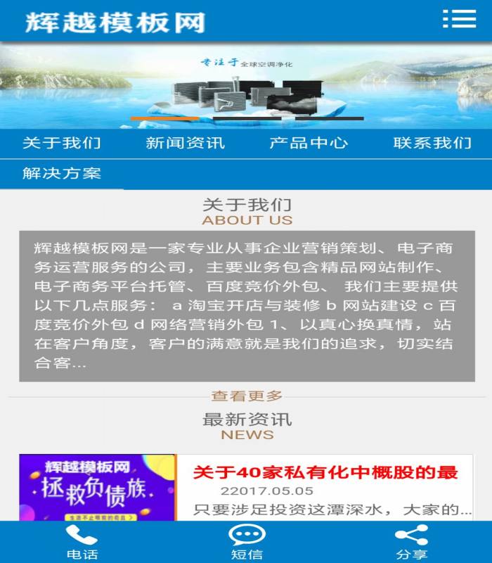 (带手机版数据同步)空调空气过滤设备网站模板 空气净化器设备网站源码,网站建设,通用模板