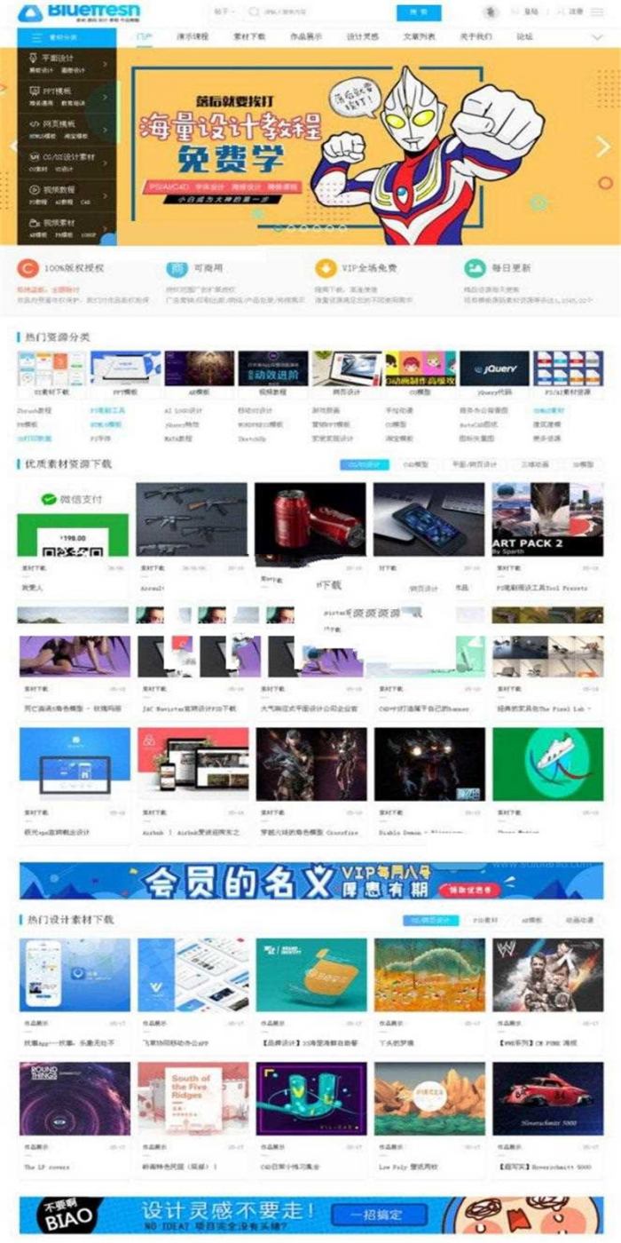 采用会员制度下载付费,集成支付宝微信等支付系统。