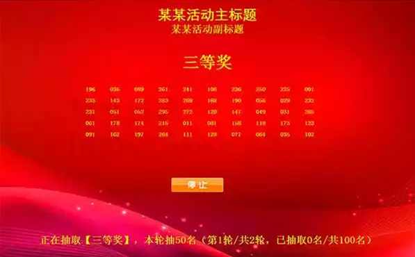 背景音乐:可自定义背景(欢迎界面背景、抽奖背景),自定义抽奖音乐(抽奖音乐、中奖音乐、颁奖音乐)