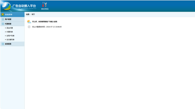 前端用户 用户可以上传多个广告,每个广告分别进行统计展示及点击。 用户一键植入,不用粘贴网址,每篇文章会 分别统计展示量,让你知道下次应该分享什么。 用户自己可以新增广告,暂时仅有顶部及底部两个广告位。 广告支持设置电话一键拨号,支持加微信号,二维码。 系统每天自动更新5000篇热门文章