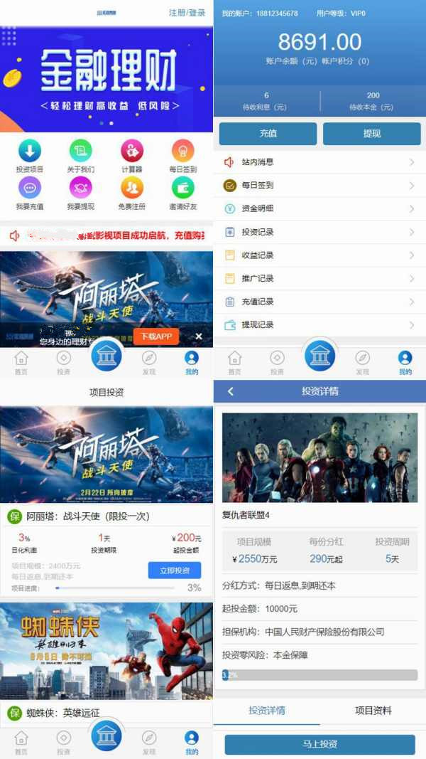 新型余额宝综合金融理财投资收益源码 理财系统每日返利资金投资金融带积分商城,抽奖等功能