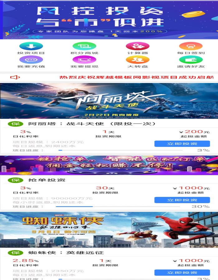 源码说明 金融投资理财平台新型金融投资理财平台源码+时时返+天天返+利资金投资+积分商城+抽奖等功能