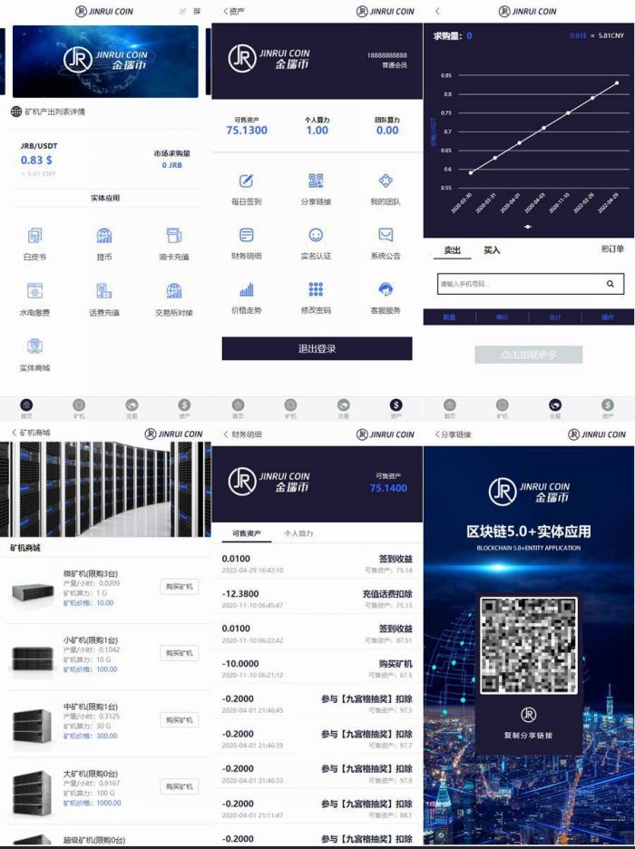 金瑞币矿机源码,ThinkPHP内核区块链算力矿机源码,云矿机挖矿区块链源码,界面非常大气美观。