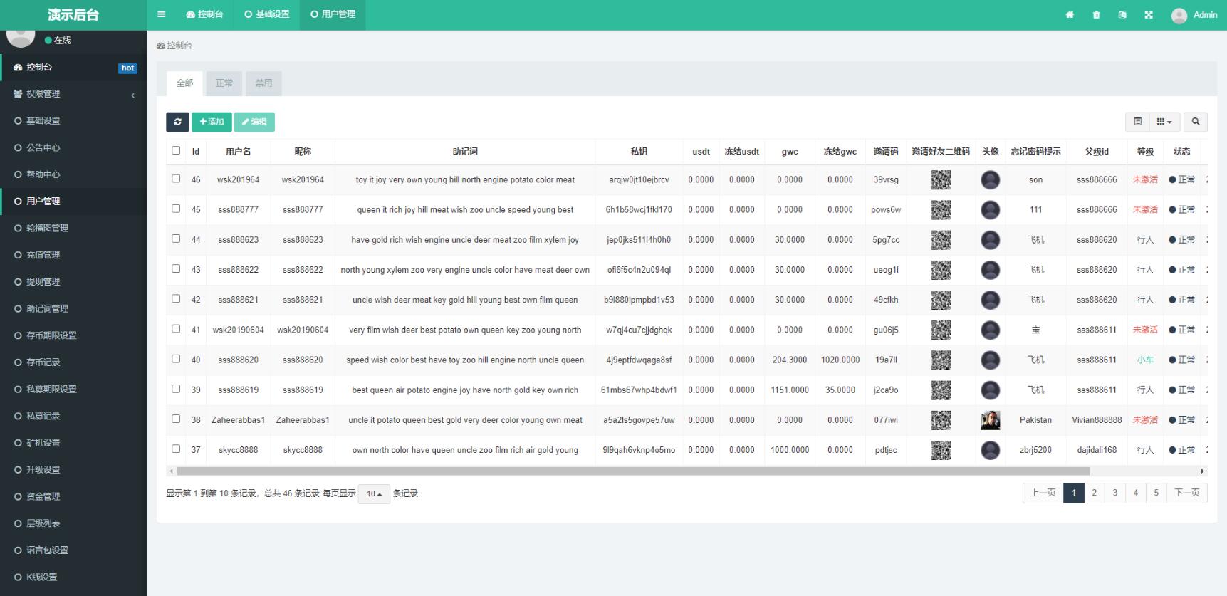 虚拟币交易系统/USDT支付/矿机系统/存币生息 双语言的虚拟币矿机交易系统,前端无VUE只有H5打包版