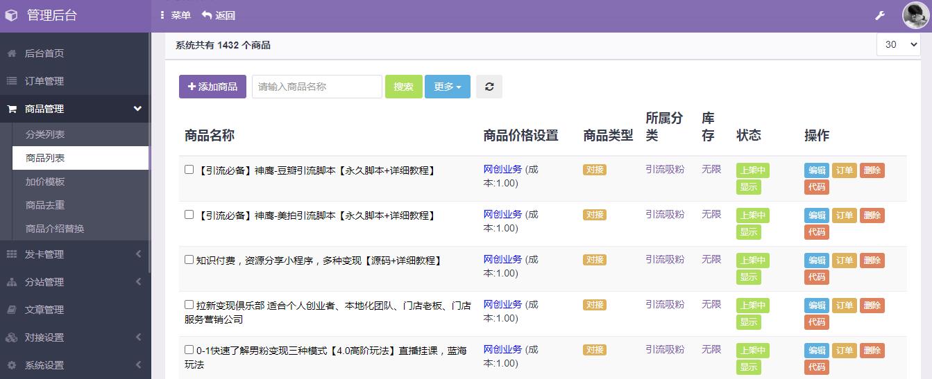 这样就可以通过卖自己网站的项目赚钱了(分站大家也可以理解为总店的加盟店,自己可以运营,就是商品有拿货价,自己是老板价格随便定,中间商赚差价)