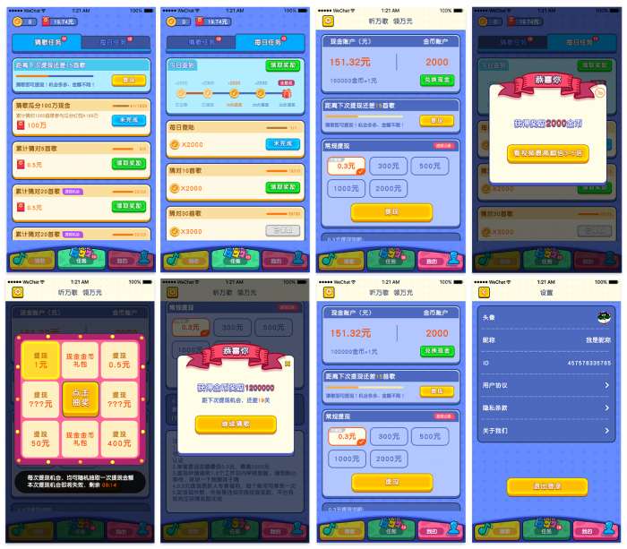 玩家可以通过猜歌、做任务等方式直接获取现金奖励;
