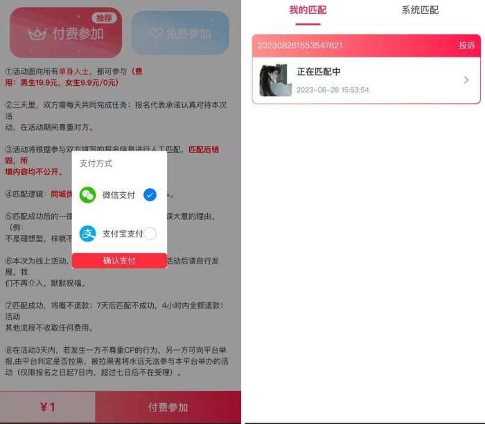 1:客户提交资料配对的钱(匹配男女都收费)
