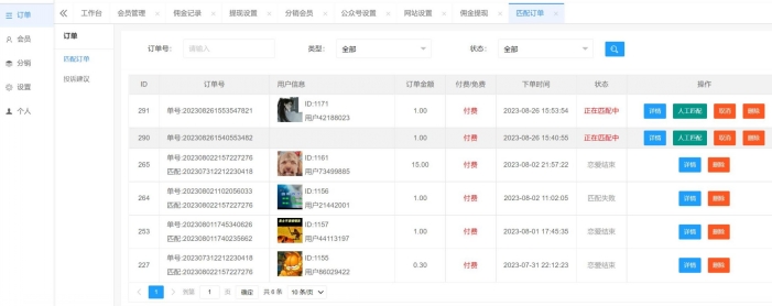 5:后台多种匹配方式,人多后,可支持自动匹配。