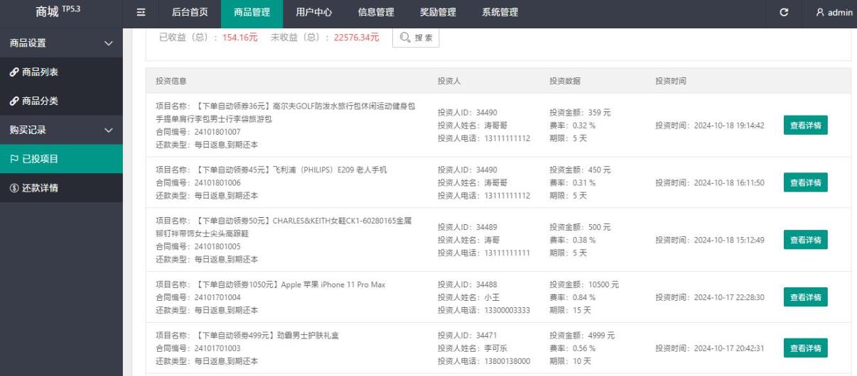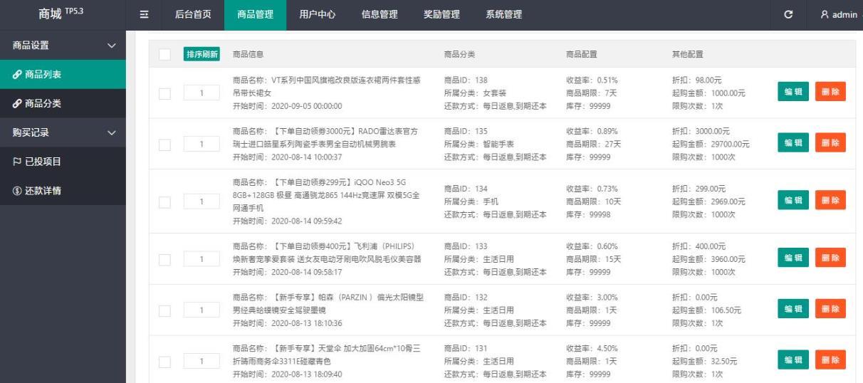 商品名称:全新返佣商城分销商城理财商城系统源码 全开源PHP+VUE源码,支持每日返息、到期还本金的理财模式