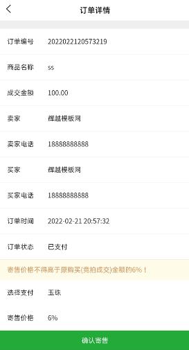 转售功能:用户也可以选择将竞拍获得的商品进行转售,按照后台设置的加价百分比进行定价。