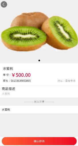 用户购买商品 第一步:在专场开放购买时间内进入专场 第二步:在平台上挑选心仪的商品并点击进入详情页 第三步: 点击“确认秒杀” 第四步:选择支付方式支付货款 第五步:点击“已确认付款”完成购买.