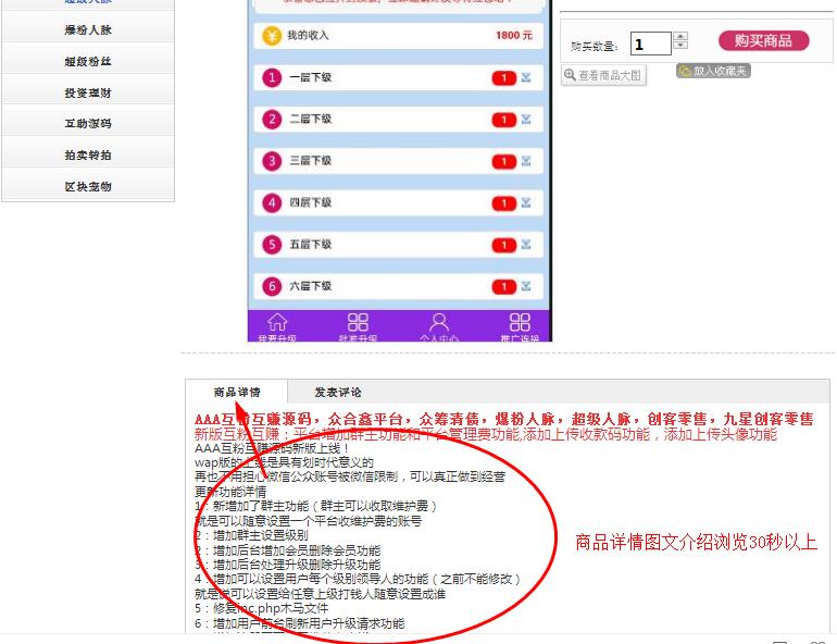商品名称:众合鑫源码,众筹清债源码,爆粉人脉源码,超级人脉源码,超级粉丝源码,创客零售源码,九星创客零售源码