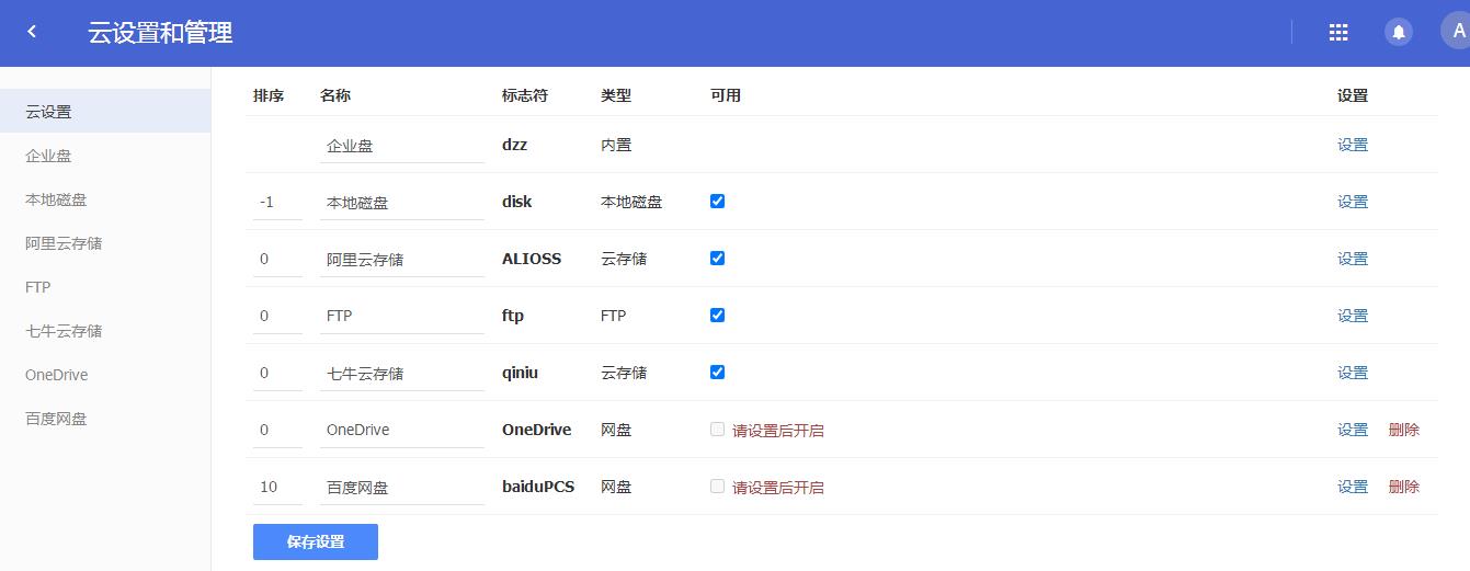 本套网盘系统支持各种存储方式,默认是本地服务器存储,同时支持FTP远程存储,并且全面对接第三方云存储,比如阿里云存储、七牛云存储、