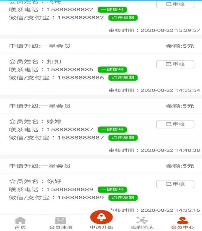 七、二星会员可以获得系统自动给匹配的9个v友,也就是说自己团队下面第二层会有9个v友主动加你为好友给你发红包,收到他们的红包后就由你为他们审核通过;二星升三星系统自动匹配自己的上三层3星会员及团队长,分别加他们好友并且发10元红包,他们会给你通过账号审核,让你正式成为三星会员;