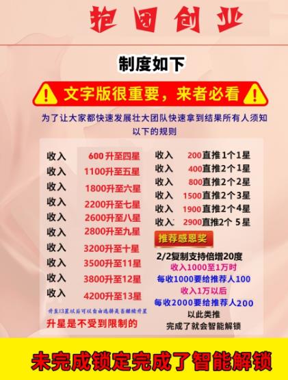 解锁条件:需要给推荐人打款(推荐人解锁后),账号恢复正常!