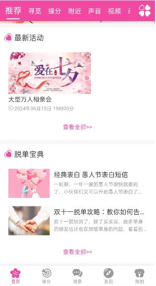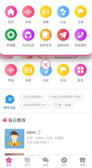 通过集体活动认识更多异性。系统会发布活动信息,审核报名用户,并向报名成功的用户推送活动通知和后续反馈。