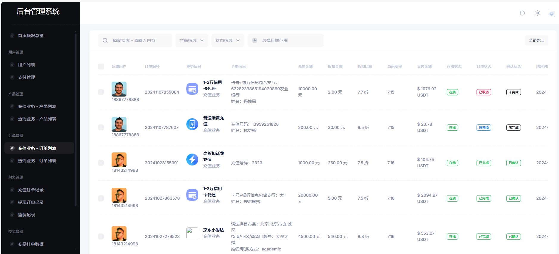 在线充值/在线交易源码/生活缴费/电话费充值/油卡燃气/等充值业务类源码附带USDT商承兑系统源码